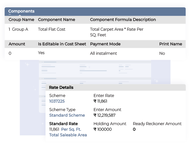 Adapt to market dynamics and customer needs. Create and manage diverse pricing models and marketing schemes, all based on a robust base cost sheet. Define final costs, payment milestones, and booking processes with built-in approval workflows, ensuring financial clarity and agility.